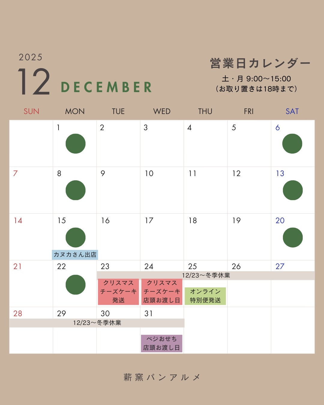 最新情報は薪窯パンアルメのFacebook、Instagramをご覧ください