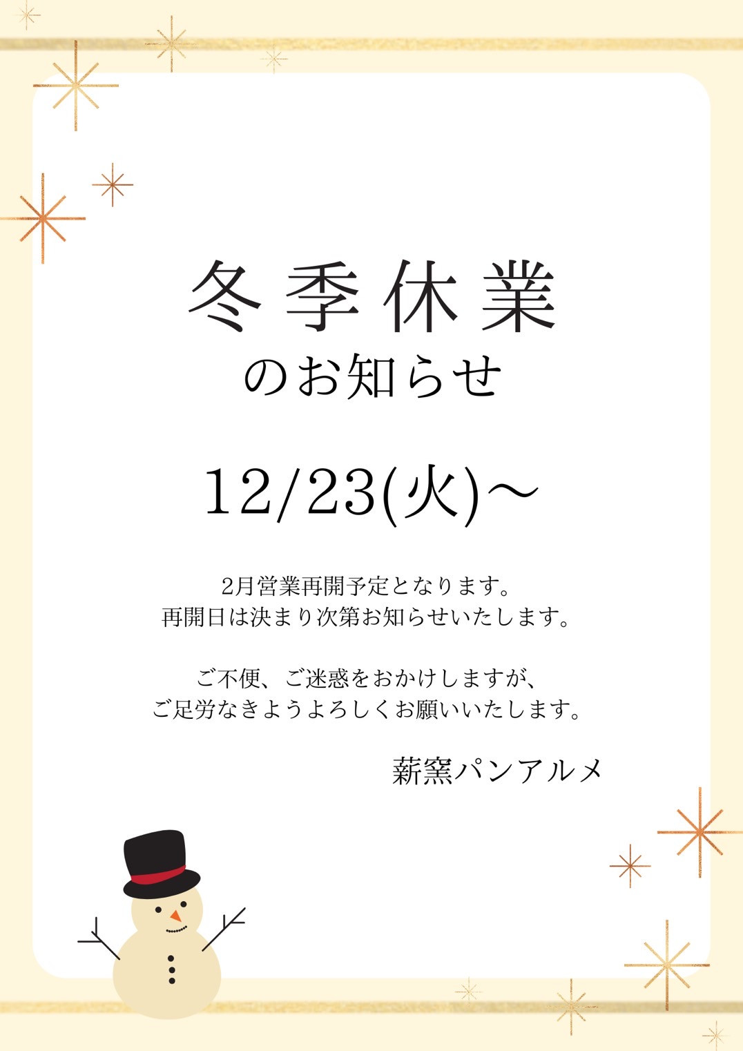 基本的にお店の営業日(土・月のみ)にお焼き致しますので定休日・長期休業中はご容赦ください。