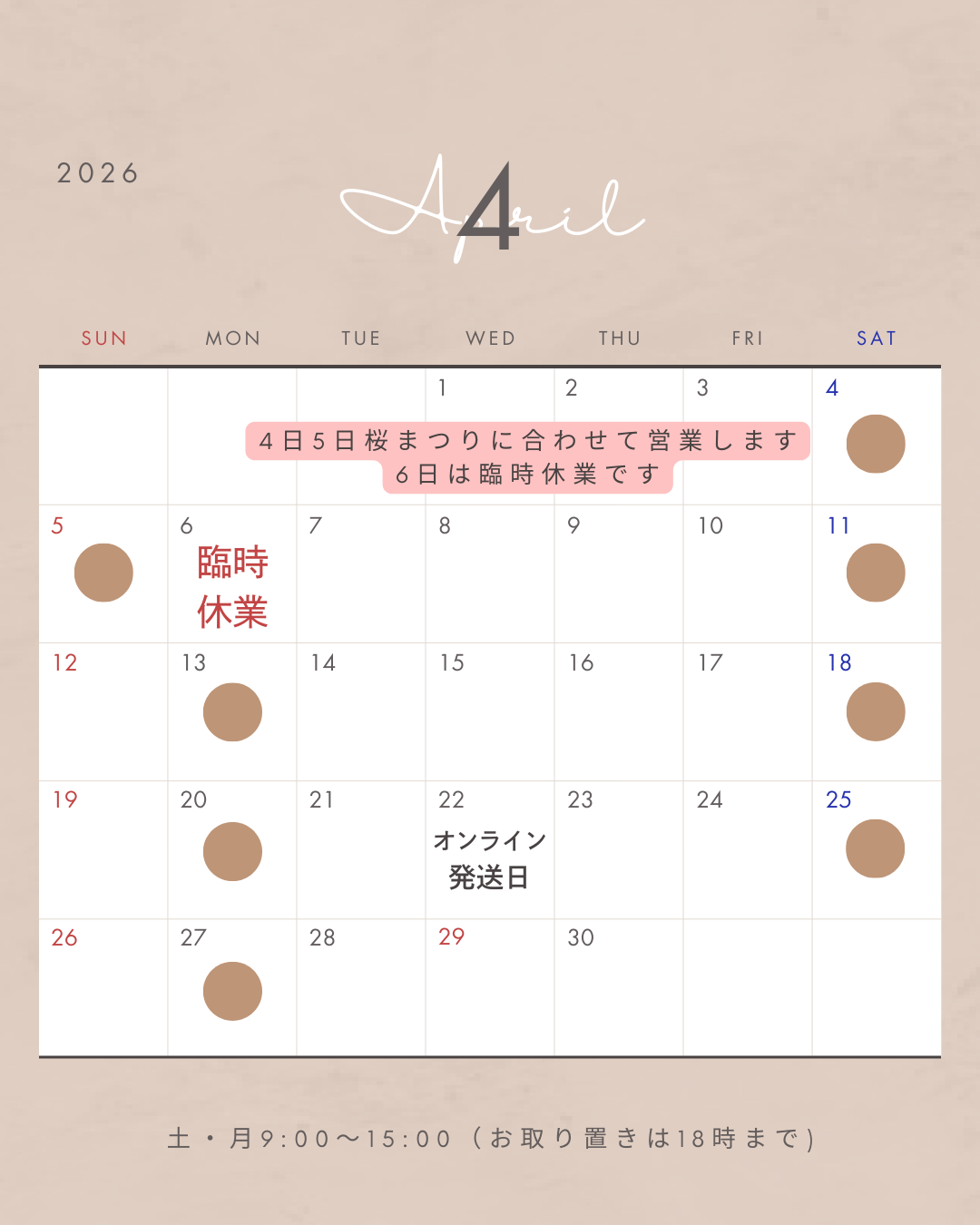 土・月 9:00~15:00